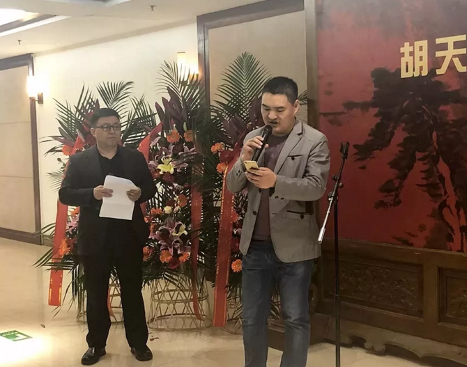 在開幕式上,《榮寶齋》期刊副主編兼編輯部主任李向陽宣讀榮寶齋副總經(jīng)理、榮寶齋畫院院長唐輝的賀信:“今天由《榮寶齋》期刊主辦,榮寶齋畫院、《藝術(shù)品》期刊協(xié)辦的胡天民畫展隆重開幕,我謹(jǐn)代表榮寶齋向此次畫展的成功舉辦表示熱烈的祝賀!我因公務(wù)外出不能親臨現(xiàn)場深表遺憾!同時也對參加此次畫展的領(lǐng)導(dǎo)表示衷心的感謝!