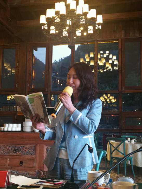 十二背后雙河旅游區董事長,詩人梅爾的愛人陳進提及梅爾的母親作為牧師對她傳道的影響之深,他提到梅爾20多歲時在南京參加一個詩會,一位出租車司機開著車聽到直播的朗誦,深受感動,沖到現場要見梅爾的故事。他說“梅爾詩歌摒棄了小我,采用蒙太奇手法,是把時空、歷史、人與自然融合在一起的復合型寫作,她已把生命擠進了石頭和溶洞?!毖杏憰v經三個多小時,最后詩人梅爾飽含深情地朗誦了自己的詩作《沉沉的家書》,研討會氣氛熱烈,節奏明快,熱評如潮。