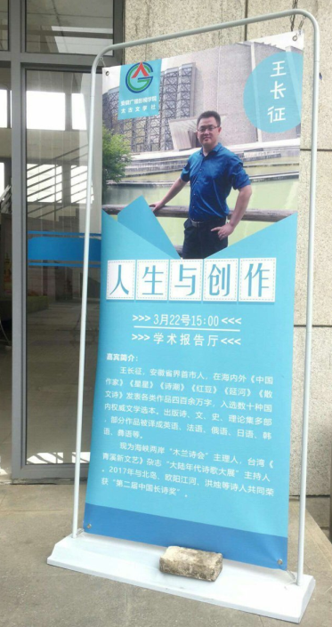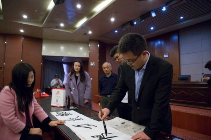 隨后,文學分享會在學術報告廳舉行,200多位師生到現場聆聽詩歌講座,期間學生問答環節,妙語連珠,高潮迭起,不時響起熱烈的掌聲?;顒咏Y束之后,文學社成員拿出了準備已久的筆墨,留下了王長征的墨寶。