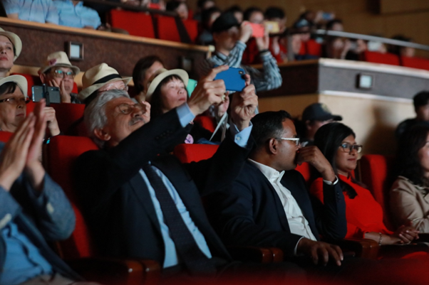 眾人期待已久的昭君今日終于亮相,現場座無虛席,盛況空前。眾多粉絲著漢服盛裝來劇場等候,迫切心情可見一斑。此次演出還吸引了國內外各界人士前來觀看,其中意大利前總理達萊馬演出前曾致信李玉剛今又現身劇場;李玉剛恩師韓美林先生親自助陣,為愛徒打call。