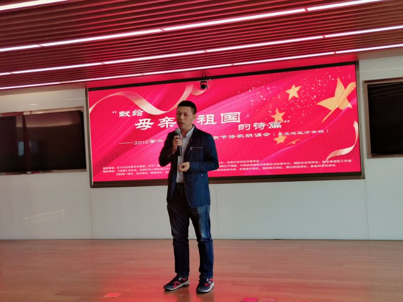 朗誦會開始前,遼寧北方詩歌藝術聯盟副主席、著名詩人呂謙詩致開幕辭,遼寧北方詩歌藝術聯盟主席、著名詩人盧彥代表主辦方致辭,《詩潮》雜志社總編、著名詩人劉川代表嘉賓致賀辭,廣發銀行沈陽分行私人銀行部總經理奚繼昕致歡迎辭。