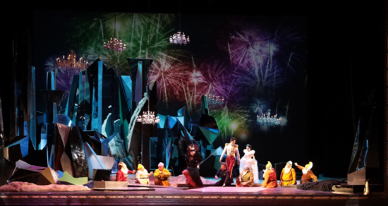 整部歌劇除了運(yùn)用高科技的多媒體影像之外,導(dǎo)演還獨(dú)具匠心地將舞臺打造成一個(gè)夢幻的童話王國,小矮人的七張迷你小床、皇后制作毒蘋果的魔法桌,以及白雪公主沉睡時(shí)的水晶棺等全部被還原在舞臺之上,讓觀眾深深沉浸在童話世界中。與此同時(shí),藝術(shù)家們的生動(dòng)演繹也成為首演之夜的一大亮點(diǎn)。飾演白雪公主的國家大劇院駐院歌劇演員張文沁,以動(dòng)情細(xì)膩的演繹成功塑造了白雪公主溫情善良的形象;青年歌劇演員牛莎莎則將陰險(xiǎn)狠毒的皇后演繹得活靈活現(xiàn);國家大劇院駐院歌劇演員王凱以充滿力量的高難度演唱展現(xiàn)出王子正義勇敢的形象;而青年歌劇演員黃延明則以低沉的聲線盡展魔鏡的神秘與魔幻。此外,由國家大劇院駐院歌劇演員王鶴翔、青年歌劇演員趙登輝、朱賀、王樂、朱翊彰、汪曉敏、侯力維、尹悅飾演的七個(gè)小矮人,也以憨態(tài)可掬的表演給青少年觀眾留下了深刻印象。
