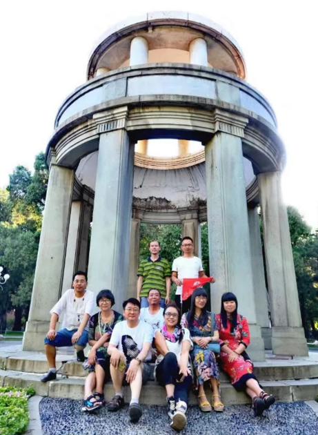 詩人們感慨,在其中觀賞,身心都溢滿了詩意。向左走,在中山先生的雕塑前凝視,在社祭壇前撫今懷古,在蘭亭碑亭前細細研讀,詩人們邊走邊看,興致盎然。
