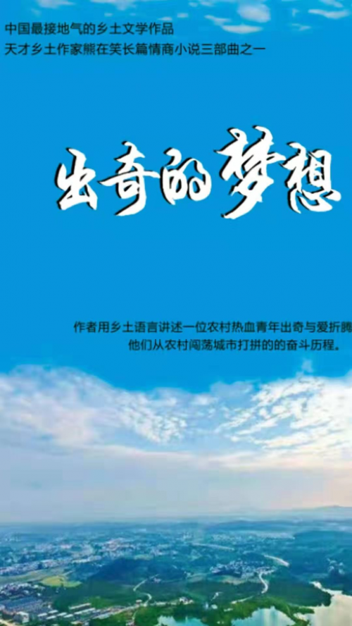 熊在笑長篇小說,《出奇的夢想》在出版過程中遭遇很多周折,最終在由人民科學(xué)出版社出版。小說出版后,身為策劃師的他,通過各種社交平臺和人脈渠道,發(fā)行到全國各地,同時在微信公眾號、網(wǎng)絡(luò)文學(xué)網(wǎng)連載。熊在笑非常接地又充滿商業(yè)智慧的出奇故事,引起廣大讀者關(guān)注,一度洛陽紙貴,一書難求。