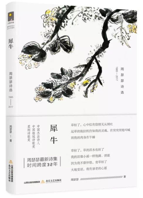 《犀牛》是周瑟瑟創作時間跨度達32年的詩歌精選集,由北岳文藝出版社列入“天星詩庫:新世紀實力詩人代表作”出版。分為“犀牛”、“一天”、“薄荷薄荷”、“咕咕”、“夢中鶴”、“最后的體溫”、“桃青李白”七輯,封面為周瑟瑟水墨畫,書內還收有他多幅書法與水墨作品。