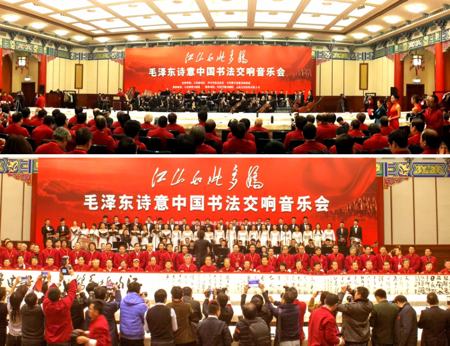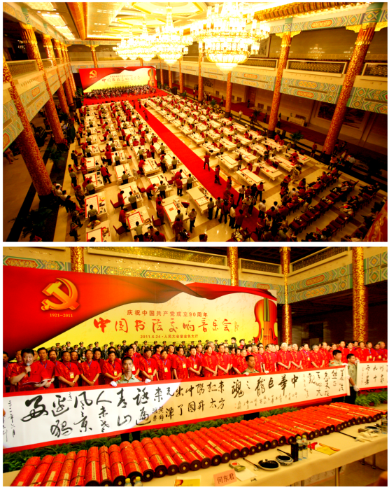 2011年6月24日, 由中國文學藝術界聯合會、中國書法家協會、人民畫報社主辦的“慶祝中國共產黨成立90周年——中國書法交響音樂會”在人民大會堂金色大廳舉行。來自全國30多個省、市、自治區的90位著名書法家在中國人民解放軍總政歌舞團宏大的交響樂曲聲中,同書長卷,祝福祖國。白景峰擔任總導演。