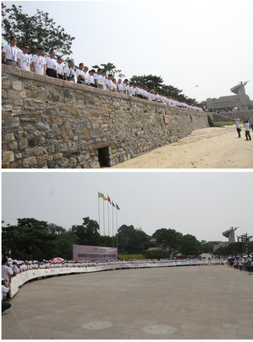 2014年7月19日,白景峰在威海劉公島策劃“紀念中日甲午戰爭爆發120周年——海峽兩岸120位書法家走進甲午戰爭紀念館”活動,并擔任總策劃。此次活動由海協會書畫交流分會、人民畫報社、臺灣中國書法學會等主辦。活動現場,在大海汽笛長鳴聲中,來自海峽兩岸120位書法家向甲午戰爭遇難的同胞默哀、鞠躬。之后,120位書法家同書120米長卷,并將長卷捐贈給甲午戰爭紀念館。