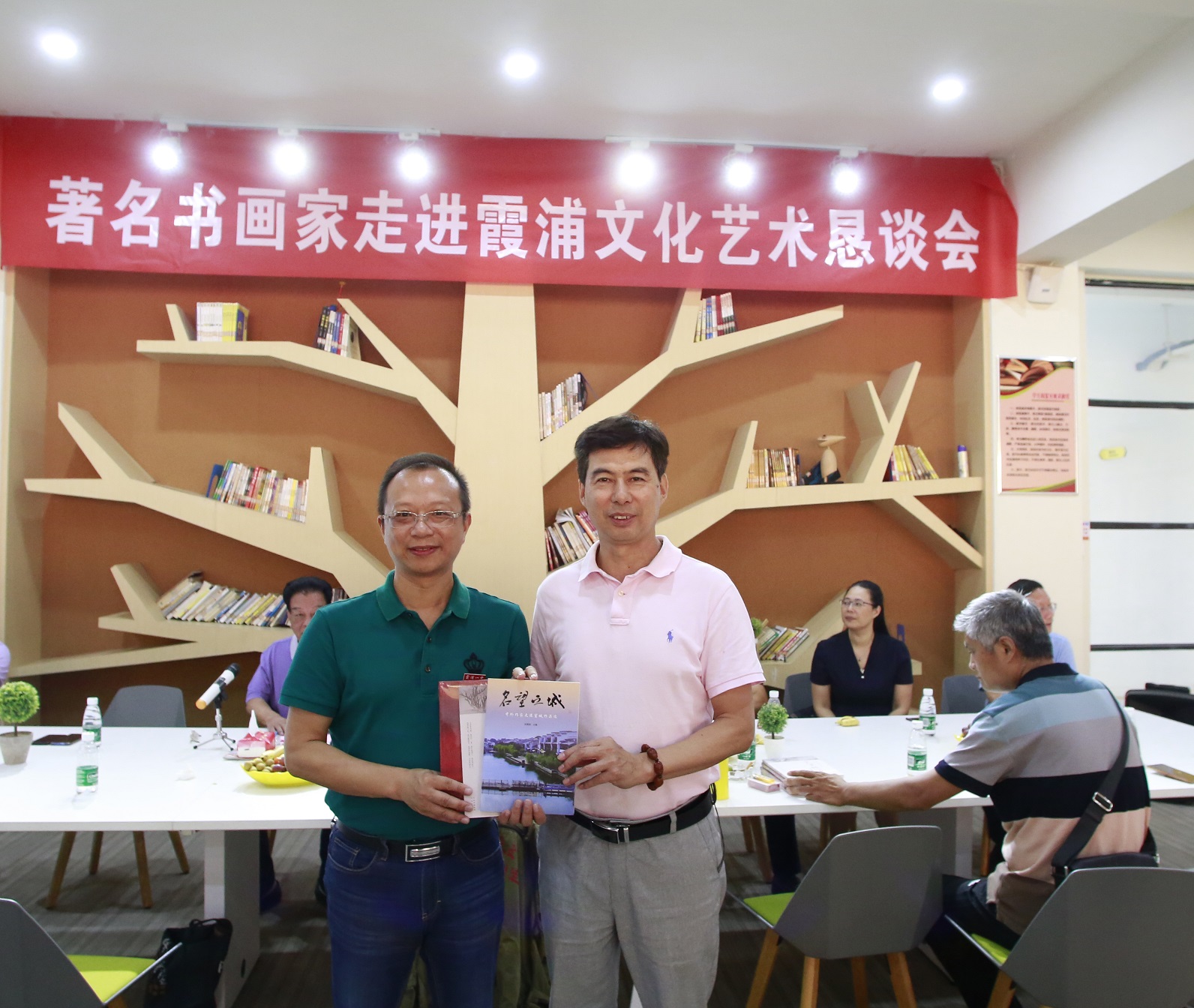 懇談會結束時,藝術家們再次進行現場書畫創作,著名作家趙晏彪將為慶祝新中成立70周年出版的《祖國萬歲》以及最近出版的《名望之城》《窯望銅官》三本書分別曾送給霞浦縣領導、中學和與會的各界代表。
