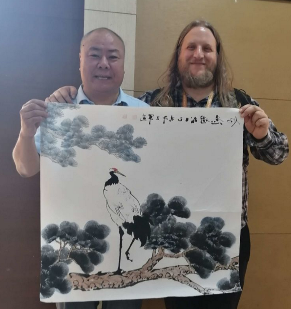 鄭生路國畫作品《空谷幽蘭》作為中國詩歌代表團團禮贈送匈牙利詩歌代表團