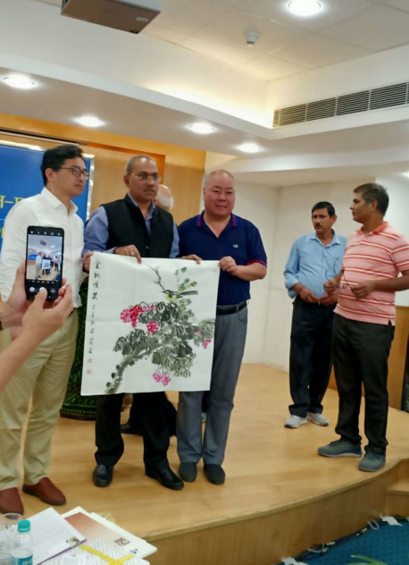 郭麗霞國畫作品作為中國詩歌代表團團禮贈送印度詩歌代表團
