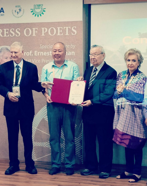 詩人陳泰灸等6位中外詩人因詩歌創作成就和詩歌交流的貢獻獲頒榮譽文學博士學位。