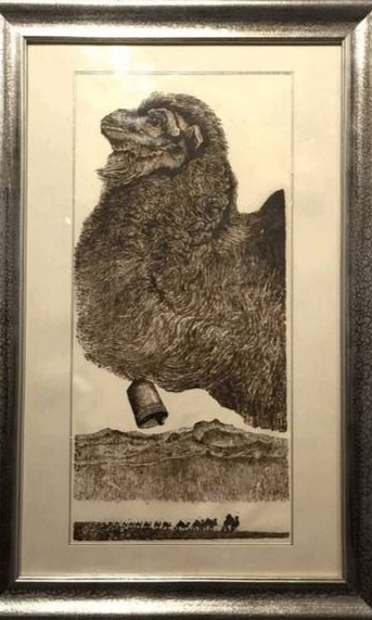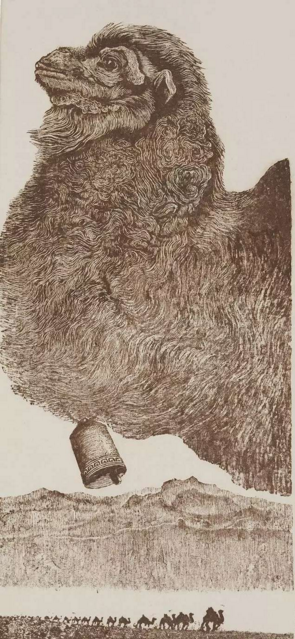 在沙駝先生家的墻上,掛著一幅名為《昂首闊步》的版畫,畫上的駱駝高昂著頭,驕傲、剛毅而堅韌,遠處是彎彎曲曲、無邊無盡的沙線、沙脊,畫面下方,一支駝隊跋涉在茫茫沙海中,鏗鏘有力的駝鈴聲似乎正在響起。版畫的作者沙清泉,是第一個跟魯迅學習版畫的人,1932年他與馬達在上海創辦中國第一個版畫講習班,也算是畫壇奇人。沙駝說:“我的筆名就是源于這幅畫,我喜歡駱駝,喜歡它永不停歇的步伐和堅韌的精神,我在藝術創作上也要做一頭駱駝。