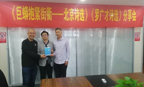 汪劍釗:對羅廣才的詩歌創作有了完整的認識,他的詩歌一個特點是題材廣泛:雅的、俗的,親情的、朋友的、愛情的、自然的等等都有涉及,詩歌就他而言就是眼光。他的詩歌還有個特點是日常性,這點得益于他作為編輯的優勢,通過大量閱讀能分辨日??梢匀朐姡瑥亩屧娦猿蔀樵?,或者讓詩的片段最終成為一首詩。
