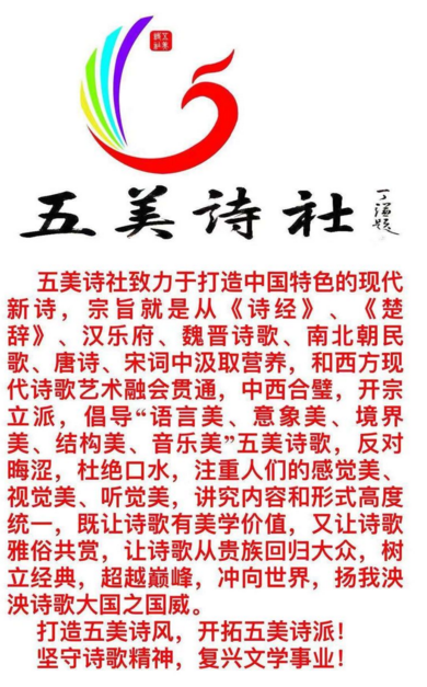 中國五美詩人、五美詩社社長老希先生是郟縣走出去的詩人,作為一個創(chuàng)作20多年詩歌的追求者,這次能夠站在家鄉(xiāng)詩歌的領(lǐng)獎臺上,接受“中國詩歌之鄉(xiāng)”貢獻(xiàn)獎,極其感慨,激動萬分。他原先在郟縣縣委上班,在1997年年底應(yīng)著名詩評家、時任中國詩歌學(xué)會秘書長張同吾邀請參加了中國詩歌學(xué)會自成立以來舉行的第一次全國詩會,結(jié)識了賀敬之、李瑛、鄭敏、牛漢、蔡其矯、朱子奇、李小雨、吉狄馬加等一大批全國著名詩人,特別是賀敬之、李瑛只能在中學(xué)課本上看到的詩人如今竟在眼前,這讓他萌發(fā)了將來一定要到北京發(fā)展的強(qiáng)烈愿望,北京才是他縱橫馳騁的海洋!后來賀敬之看了他的勵志名作《做一個巨人》親自給他寫信給予高度肯定,鼓勵其繼續(xù)保持創(chuàng)作熱情。這讓老希自信百倍,最終下定決心毅然北上赴京實現(xiàn)詩歌夢想。在北京發(fā)展初期,老希因詩歌處處在社會上碰壁,無疑這給他的萬丈雄心潑上殘酷冷水,他慢慢放棄詩歌一心在新聞界和商界打拼,沒想到十余年后遇到在中國詩歌學(xué)會擔(dān)任會長助理和副秘書長的詩人大衛(wèi),對其的詩歌大大肯定并幫助在作家出版社出版他的珍藏版詩集《宇宙之鷹》,同時在北京舉行了大型詩歌音樂朗誦會,讓老希重新復(fù)出詩壇。當(dāng)時出席的中國詩歌學(xué)會會長雷抒雁、副會長兼秘書長李小雨、中國作家雜志常務(wù)副主席楊匡滿以及人民日報原副總編保育鈞、中國作協(xié)原書記處書記、中國作家出版集團(tuán)黨委書記兼管委會主任張勝友都給予高度評價。后來中國詩歌學(xué)會又在中國作家協(xié)會舉辦了老希精華版詩集《穿越靈魂》作品研討會,與會的中國作協(xié)領(lǐng)導(dǎo)和詩歌專家白庚勝、張勝友、張同吾、李小雨、程步濤、曾凡華、楊匡滿、石厲、霍俊明、陳亞軍等的紛紛肯定再次激發(fā)了老希的創(chuàng)作熱潮,從此老希真正復(fù)出詩壇,悉心研習(xí)中外詩歌,特別是古典詩歌和西方現(xiàn)代詩歌的融合,并逐漸提出了中西合璧的“語言美、意象美、境界美、結(jié)構(gòu)美、音樂美”五美詩歌美學(xué)主張,極力實踐,奮力實現(xiàn)了詩歌的重新崛起,后在中國現(xiàn)代文學(xué)館舉行《信念》詩集首發(fā)式暨中國五美詩歌研討會,得到與會領(lǐng)導(dǎo)和專家吉狄馬加、邱華棟、梁鴻鷹、方文、趙智、王世堯、中島等的再次肯定,上百家主流媒體給予報道。