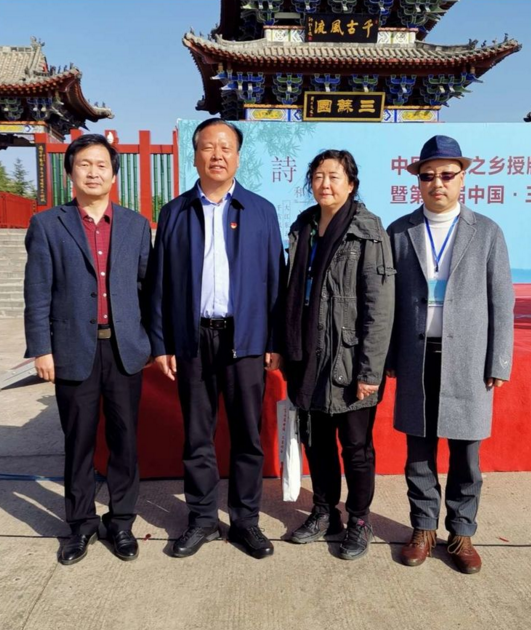親切在“中國詩歌之鄉(xiāng)”授牌儀式上和郟縣三大著名詩人藍(lán)藍(lán)、高春林和老希留念