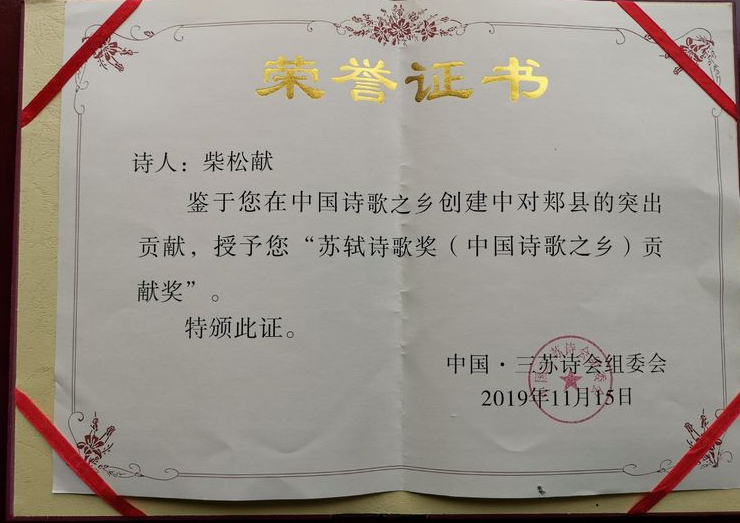 五美詩社社長老希榮膺老家郟縣“中國詩歌之鄉(xiāng)”貢獻(xiàn)獎