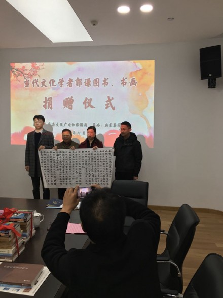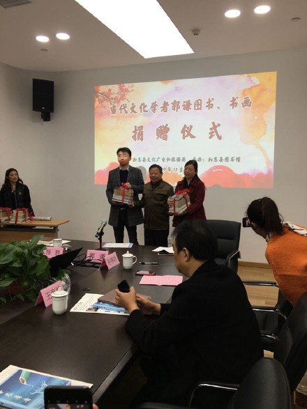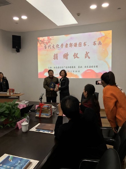 2019年11月20日上午9點半,江蘇如東縣文化廣電和旅游局在如東圖書館會議室,主辦了京城著名文化學者郭謙圖書、書畫捐贈儀式。