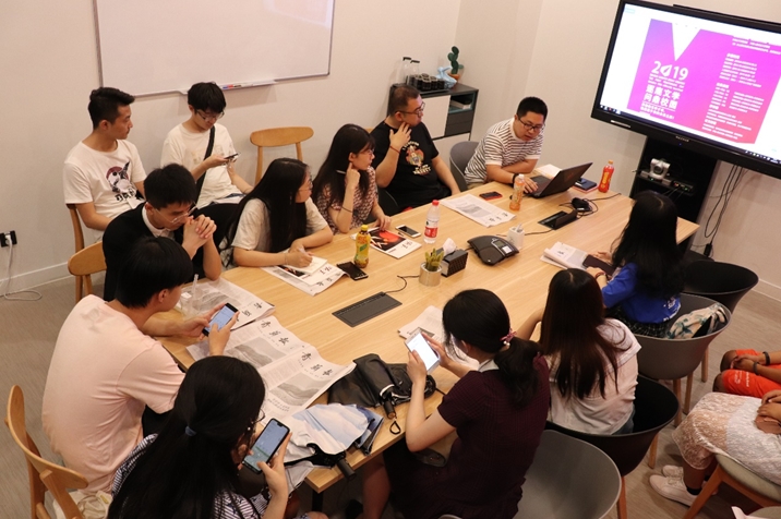 來自12所高校的文學(xué)社編輯們參加的第一次稿件評(píng)選會(huì)