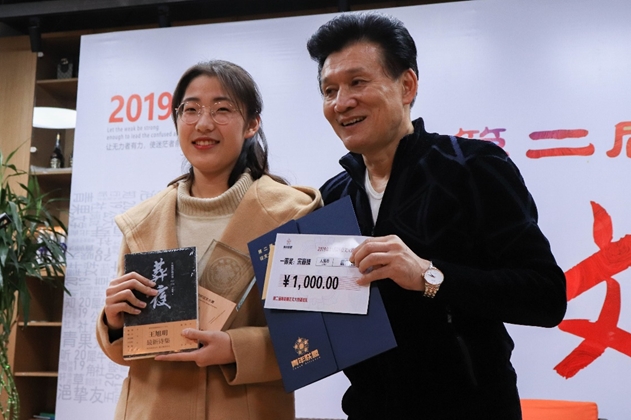 當(dāng)天下午,頒獎(jiǎng)禮由中國傳媒大學(xué)播音主持系本科2017級(jí)張雅文同學(xué)主持,王旭明、李桂杰、林夕、葦楓、曾小亮等作家,以及音樂制作人、歌手蔣山參加了本次活動(dòng),并為同學(xué)們進(jìn)行頒獎(jiǎng)。