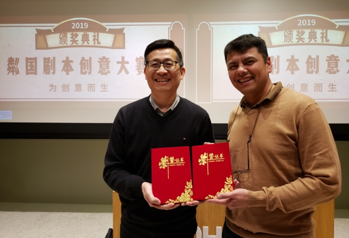 2019年11月10日,孫博在北京接受好萊塢著名劇作家何塞•西勒里奧(José Silerio)頒獎(jiǎng)