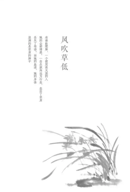 娜仁琪琪格詩集《風吹草低》為中國作家協(xié)會少數(shù)民族作家重點扶持作品,詩人談驍任責任編輯,長江文藝出版社出版發(fā)行。由《詩歌風賞》編輯部統(tǒng)籌,青年作家、設(shè)計師蘇笑嫣設(shè)計并封面作畫。