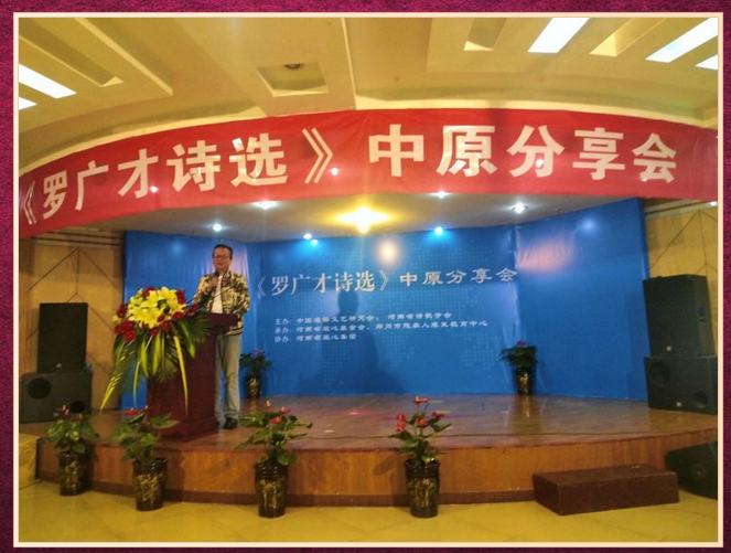 2019年11月9日,由開封市詩歌學會、開封市凡高美術(shù)學校、開封市詩云書社聯(lián)合主辦的“《羅廣才詩選》首場分享會”在開封舉行。分享會上,市文聯(lián)黨組書記樊城、市詩歌協(xié)會會長李雙以及我市的與會詩人先后發(fā)言。開封市知名朗誦家賀捷新、陳可潔、潘慧英、賀芳現(xiàn)場朗誦了羅廣才的經(jīng)典詩篇,為分享會助興。11月10日,由中國通俗文藝研究會、河南省詩歌學會主辦,河南省愛心基金會承辦,鄭州市殘聯(lián)康復中心協(xié)辦的《羅廣才詩選》中原分享會在鄭州市殘聯(lián)康復中心成功舉辦。河南省作協(xié)副主席、河南省詩歌學會會長張鮮明等來自天津、北京、商丘、平頂山等全國各地的文朋詩友200余人參加了此次分享會。《羅廣才詩選》由天詩國際策劃、上海文匯出版社于2019年8月出版發(fā)行,被列為“中國詩歌百年名家詩典”書系之一。該書是詩人羅廣才35年詩寫歷程中精選出的122首詩歌,也是詩人公開出版的首部詩集。此次活動分為讀書分享會與作品研討會兩個環(huán)節(jié),在詩選的分享會上,河南省作協(xié)副主席、省詩歌學會會長張鮮明代表河南詩歌界對羅廣才等天津詩人一行的到來表示熱烈的歡迎,并從為詩、為人兩個方面高度評價了羅廣才先生。詩集的策劃者、主編中島也談了自己參與編選詩集的整個過程,以及對作者羅廣才認真負責的態(tài)度表示了感謝與欽佩之情。在作品研討會上,與會嘉賓紛紛爭先發(fā)言,分別從寫作風格、語言藝術(shù)、詩人視野、作品深度等各個方面對詩集《羅廣才詩選》給予了中肯的評價和建議。無疑,對于天津、河南兩地的詩人來說,這是一次深醇的文化盛典,更是一次真摯的心靈盛筵,這樣的詩歌交流會將對兩地詩歌創(chuàng)作的進一步發(fā)展和提升有著積極的推動作用。