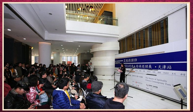 2019年11月23日,“靈性的回歸——中國當代詩人繪畫巡回展”亮相津門,在智慧山藝術(shù)中心燃情揭幕,將詩人畫展的流動美感與天津文化的開放包容相合,為天津的藝術(shù)愛好者們享受繪畫和詩歌的雙重意境打造出一個夢幻而又充滿哲思的空間。詩人多多、許德民、潞潞、車前子、馬莉、李云楓作為參展詩人的代表出現(xiàn)在會場。作為國家藝術(shù)基金扶持的文化公益項目,“靈性的回歸——中國當代詩人繪畫巡回展”在策劃團隊的帶領(lǐng)下先后走過北京、太原、青島、深圳、揚州,每一站所營造的詩與畫的氛圍各有特色、各具影響。此次天津站,被出品人張莉女士稱為“收官大展”,其在致辭中說:“(詩人畫展)歷時一年半,從北到南、從東到西,終于在天津劃了一個完美的句號。畫展集聚了中國當代最具影響力的詩人,他們的疊加就構(gòu)成一部詩歌史。