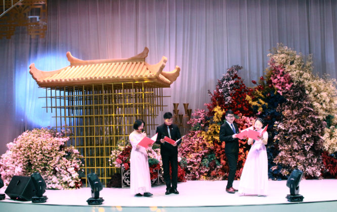 第五屆華語詩歌春晚安徽巢湖分會場負責人許瑞杰為詩會致辭,他對過去一年的工作做了總結,對新年學會工作充滿暢想。巢湖市相關部門負責人金彪、唐斌宏、陳昌琴、李曉武等出席了詩會。