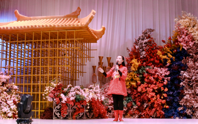 詩會在學會舞蹈隊12位會員舞動的《中華情》激情優美的開場舞中拉開了帷幕,詩會以激情洋溢、意境深遠的朗誦為主,同時穿插了歌唱和精彩的舞蹈、旗袍秀、歌伴舞、器樂等多種藝術形式,全場26個節目各具風格、各有特色,充分展示了華語詩歌魅力。大家載歌載舞,以詩會友,老師們用一首首或深情或激昂、或溫婉或清新的華語詩歌,用專業的技巧與真摯的情感,抒發不同的家國情懷。詩會現場氣氛熱烈,掌聲陣陣,處處洋溢著節日的氣氛。