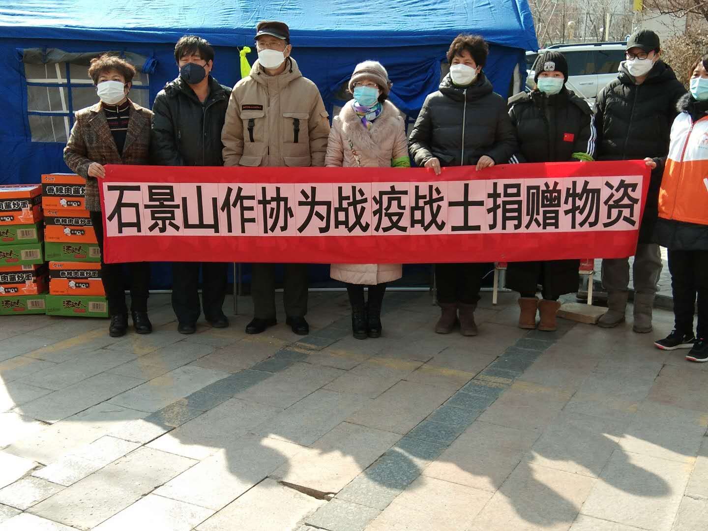 2月26日,北京市石景山區作協主席李金明、副主席代志強等一行來到石景山區八角街道花園社區,將支援抗擊疫情行動的方便面、火腿腸等生活用品送到抗擊疫情執勤人員手中,受到街道辦事處、社區領導和工作人員的一致好評。大家表示,疫情無情人有情,作協的慰問非常及時,讓人感到非常溫暖。