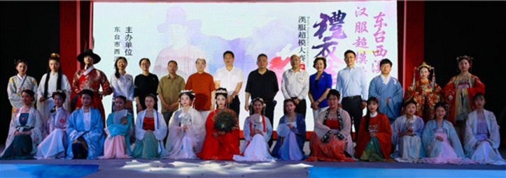 東臺市西溪旅游文化景區領導、頒獎嘉賓、頒獎典禮主持人與漢服超模大賽獲獎選手合影留念(2020年6月26日晚)