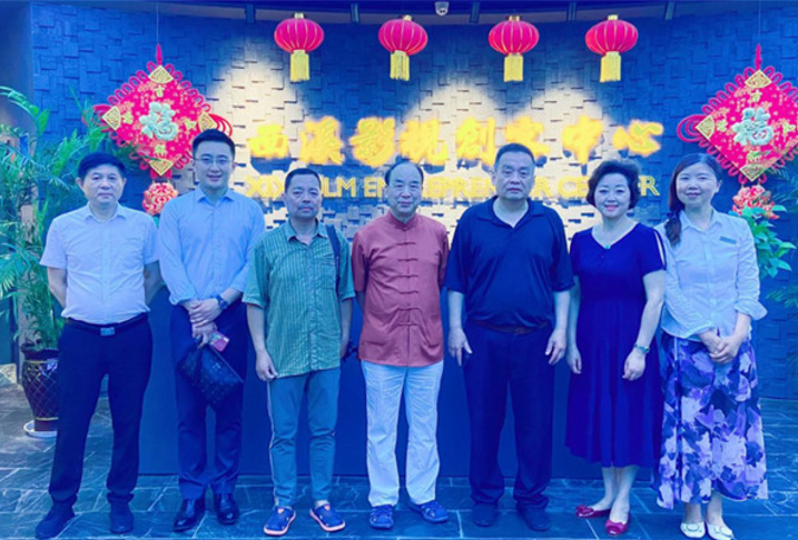 頒獎典禮主持人、西溪旅游文化景區宣傳負責人與評委合影于西溪影視創客中心(2020年6月26日晚)
