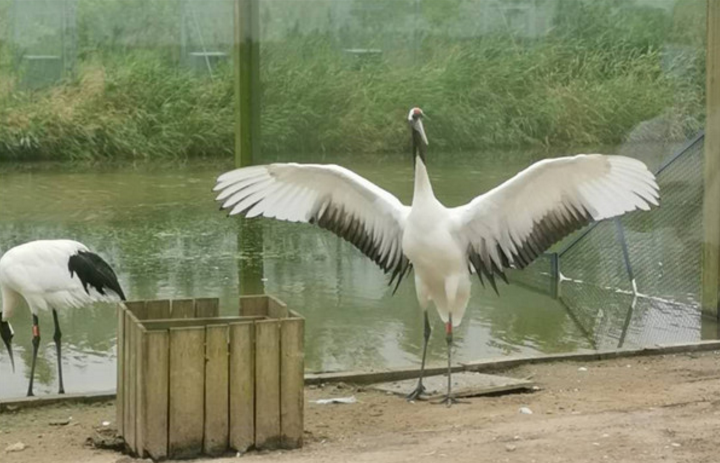 射陽丹頂鶴救護繁育中心翩翩起舞的丹頂鶴(2020年6月28日上午)