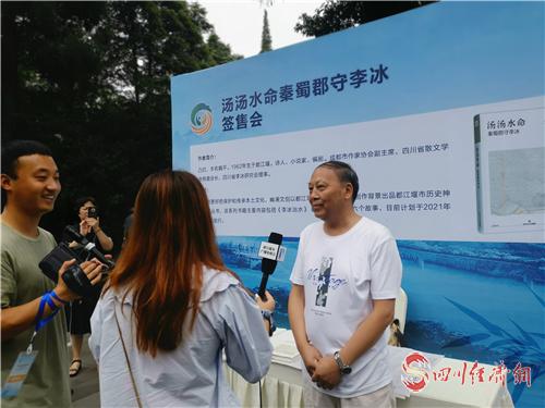 8月13日,在李冰誕辰之際,由四川省文化和旅游廳主辦的“大灌區(qū)”文旅發(fā)展聯(lián)盟成立暨項目簽約儀式在都江堰市南橋廣場舉行。現(xiàn)場,作為系列活動的子活動之一,主辦方還特別邀請凸凹舉行了《湯湯水命一一秦蜀郡守李冰》一書的簽售儀式。同時,《四川經(jīng)濟日報》以兩個整版推出的《水房子》節(jié)選還送到了每一位參會嘉賓的手上。