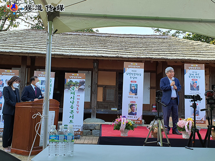 娛道文化傳媒訊 2020年9月26-27日,韓國金達(dá)鎮(zhèn)文學(xué)館主辦的,第25屆金達(dá)鎮(zhèn)文學(xué)節(jié)和第31屆金達(dá)鎮(zhèn)文學(xué)獎(jiǎng)、第11屆昌原KC國際文學(xué)獎(jiǎng)?lì)C獎(jiǎng)典禮,在韓國昌原市金達(dá)鎮(zhèn)文學(xué)館和金達(dá)鎮(zhèn)先生故居舉辦。