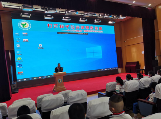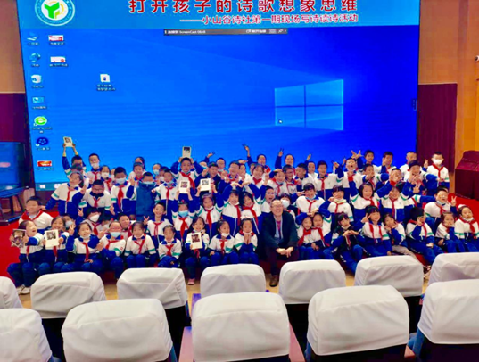 啟動儀式后,周瑟瑟為“小山谷”詩社師生作了題為《打開孩子詩歌想象思維》的詩歌啟蒙講座,帶領孩子們現場寫詩、讀詩。周瑟瑟以他自已來學校時寫的詩來分析詩是什么,他引導孩子們去認識詩的形狀,去傾聽詩的聲響,去聞詩的氣味。他告訴孩子們如何通過觀察周圍的一草一木、一景一物來寫下你看到的、你想到的、你聞到的東西,如何開動你的思維,展開你想象的翅膀,去捕捉生活中的詩。他認為詩就存在于你的生活中,只要你掌握了發現詩的方法,寫詩并不難。尤其是在兒童時期,詩的想象最為活躍,詩是一種最好的記錄成長的方式。