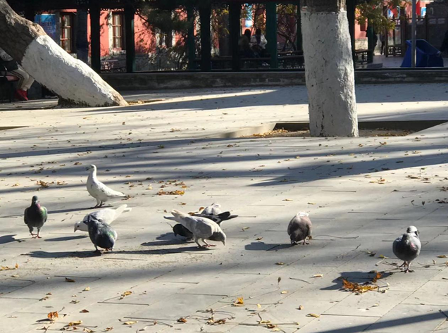 靈光寺的鴿子在陽(yáng)光下咕咕覓食