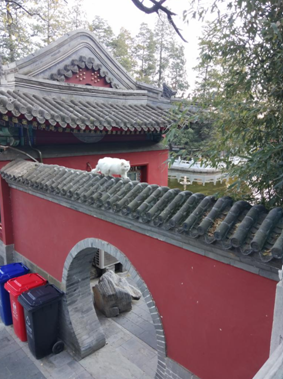 靈光寺的貓從墻上走過(guò)