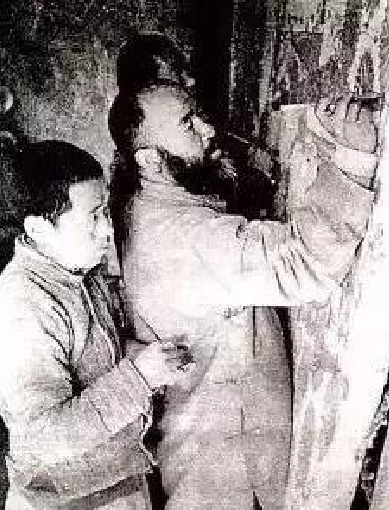 張大千在敦煌臨摹壁畫