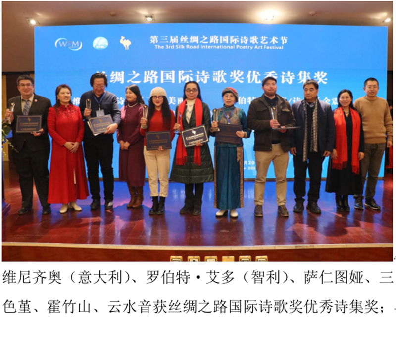 我還要感謝“第三屆絲綢之路國際詩歌獎”評委會授予我年度詩集獎,感謝中國詩人、作家曹誰和意大利作家、漢學家雪蓮的翻譯,沒有他們,我就不可能參加這場重要的國際獎的評選。最后,我很高興在這里提到今年是中國和意大利建交50周年,預祝各位作家、詩人和朋友們前程似錦,萬事如意!再次感謝你們!”(發言內容為節選,意大利詩人,翻譯家。)