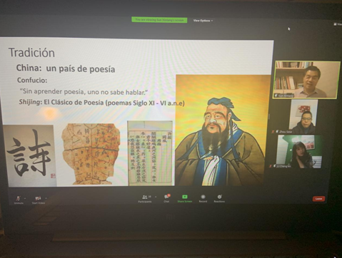 孫新堂主持了“云”上讀詩會,回顧中國詩人訪問拉美的情況