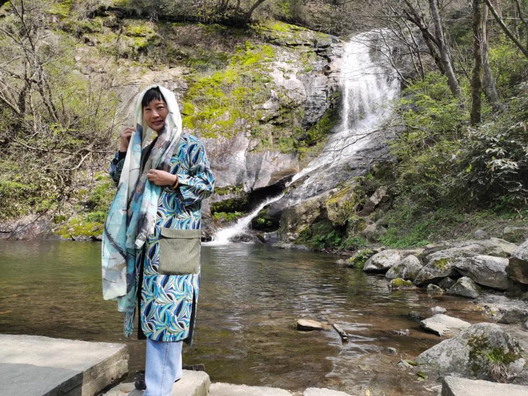 武眉凌在飛仙瀑 (葛成鈺 攝)