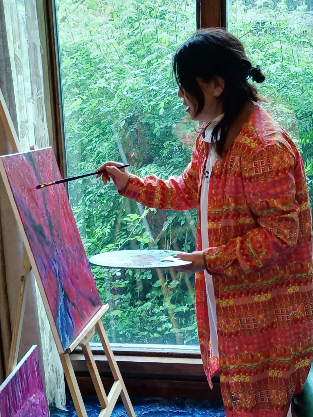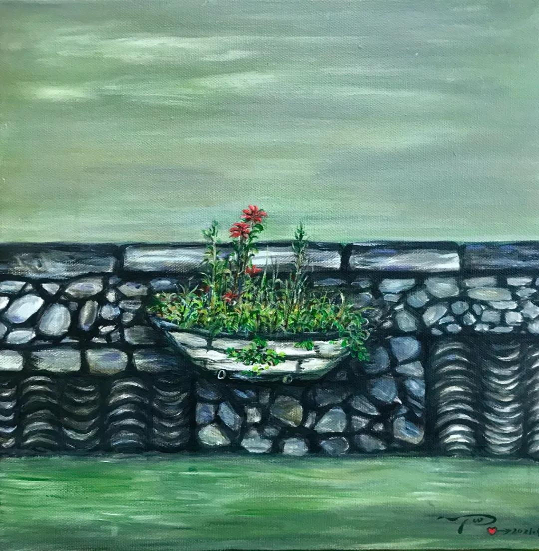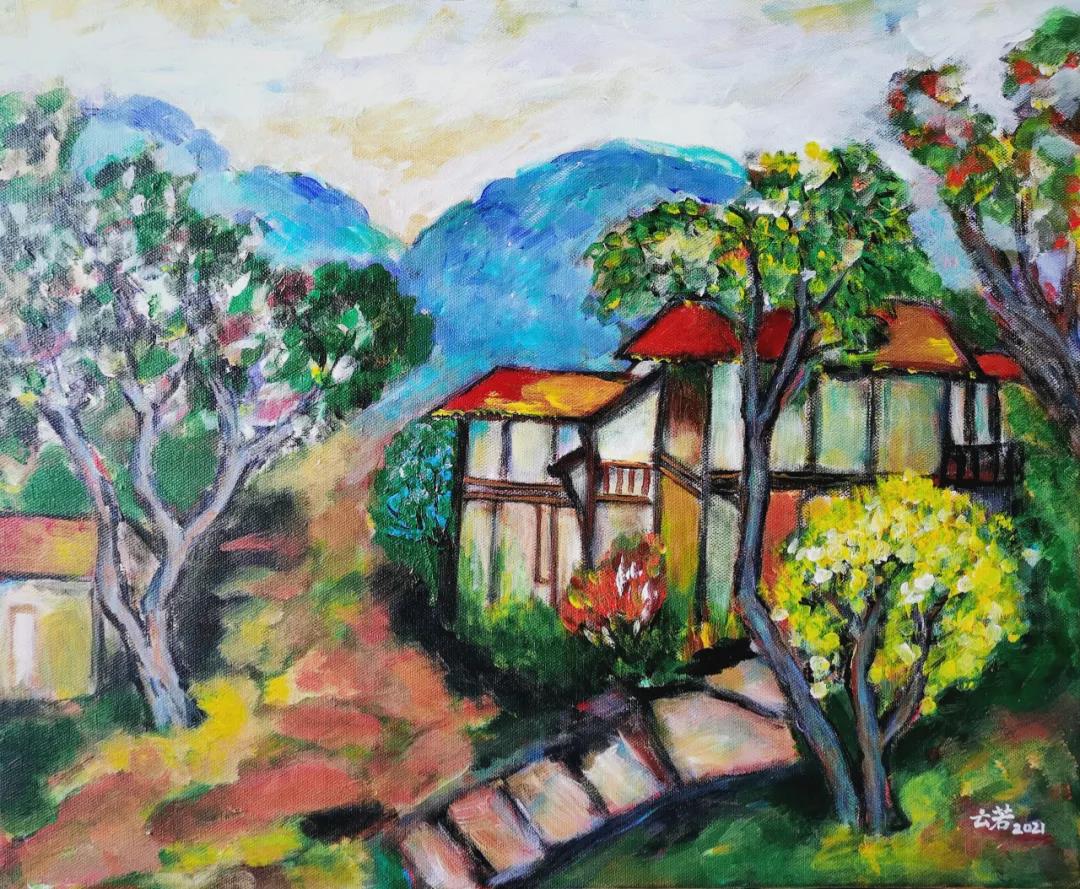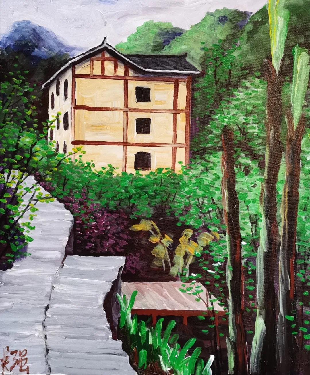 “滿滿的工作行程里,我為十二背后的邀約空了兩天,冥冥中我和它注定擁有這場妙不可言的相遇。來到這里,我不僅過了一個刻骨銘心的生日,也因為它獨特的美,封筆21年的我熬了兩晚創作了一幅畫,希望珍藏在此,也把我對藝術的那份熱愛保留于此。”藝術批評家、詩人、策展人楊衛為十二背后開筆作畫。