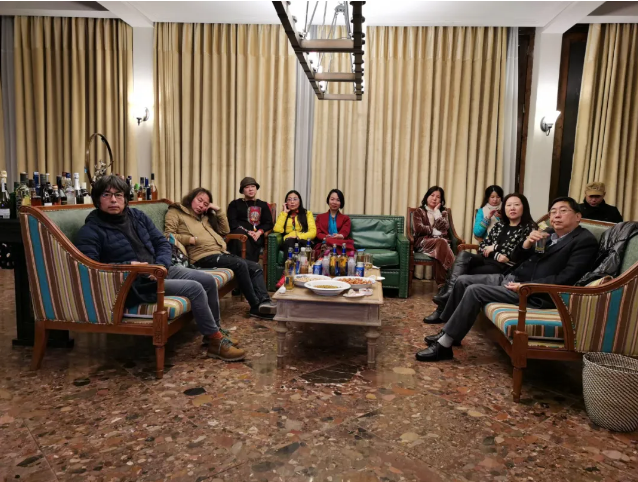 最有口碑的藝術批評家、策展人楊衛,碰到北京宋莊最美最有格調的樹美術館館長,不得不說是上天送給十二背后的一份厚禮,不寫詩的顏局長(右二),估計也在考慮試著練習分行了。