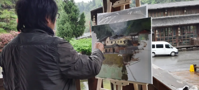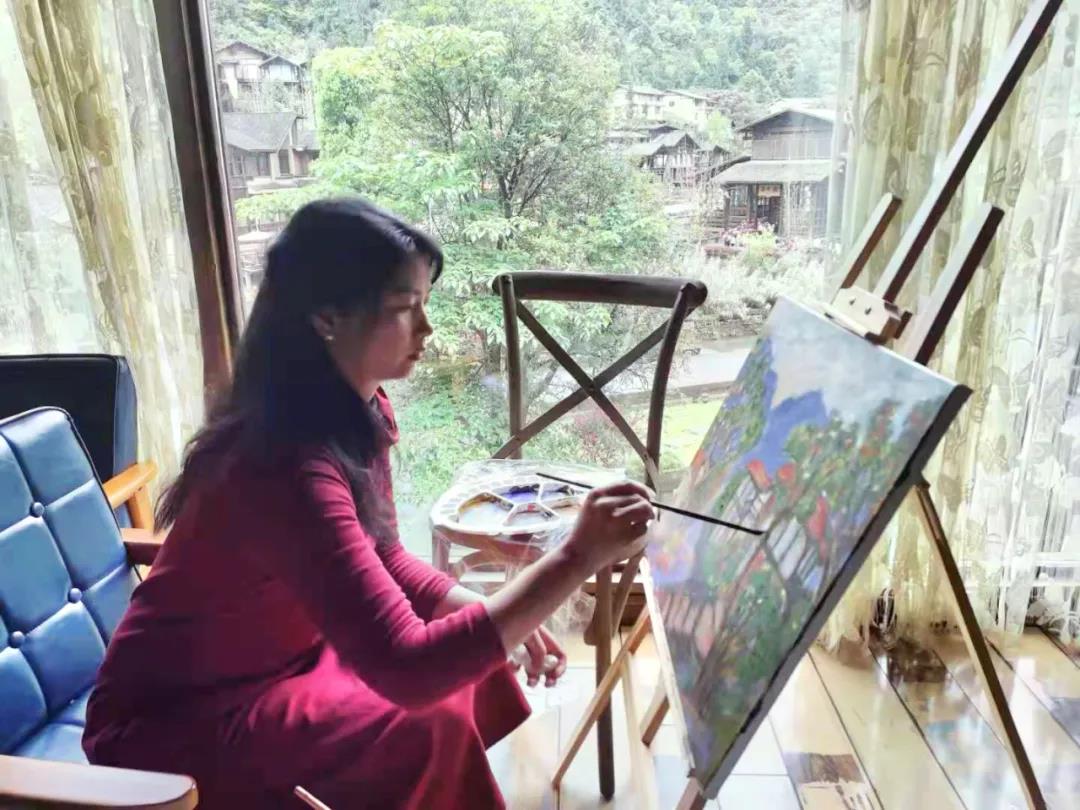 “十二背后的原生態保留的相對比較完整,所以作為畫家的我們特別青睞這里,也激發了我們大量的創作靈感。”任教于中國傳媒大學的著名畫家吳靜涵站在A715陽臺的畫架前,一邊畫,一邊對記者說。