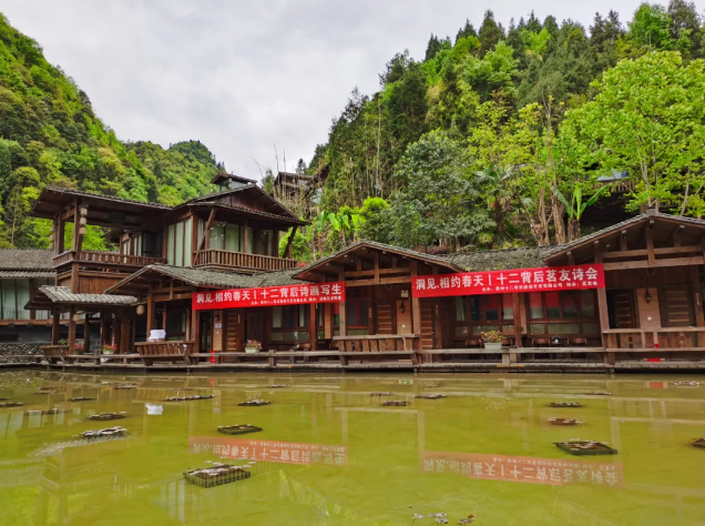 近日,十二背后雙河旅游區游動著一批特殊的客人,有站在畫架前作畫、被游客圍觀的畫家;有身背吉它,留著披肩長發的畫家音樂人;有裙袂飄飄身著民族服裝合影的詩人;還有扛著長槍短炮尋找焦點的記者。某一瞬間,雙河客棧梅爾茶舍氤氳著茶香的空間,充斥著舞文弄墨,插科打諢的人;更有列隊整齊,在雙河宴會廳聽十二背后研學導師講植物扎染的中小學生,人間四月天,雙河生紫煙,2021年4月5日至9日,十二背后被藝術引爆!