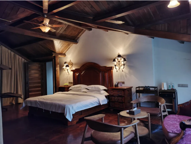 十二背后除了洞林山水妙不可言,雙河客棧本身也是一道風景,多個套房讓人嘆為觀止的木質頂樓,奇妙的裝修裝飾,讓藝術家們感慨,眼睛不夠用,雙河客棧由張藝謀御用設計師親力打造,一房一景不重樣,它恢宏、大氣、典雅,被《中國國家地理》評為“全國精品客棧”,2020年被中國詩歌春晚評為“十佳詩意客棧”。