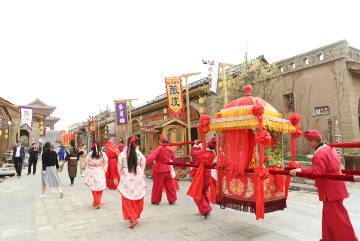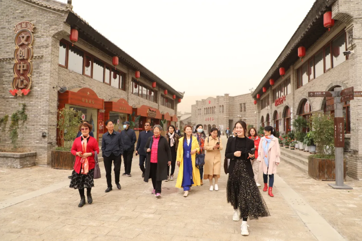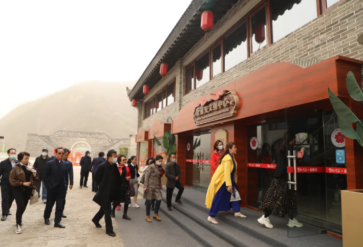 采風第一站,嘉賓們來到了圣地河谷·金延安文化旅游園區,在工作人員的帶領下,參觀了金延安南北主題文化街區、安瀾門、教堂書店、文創中心、金延安鄉村振興大賣場、民宿院落等,聆聽工作人員講解延安歷史文化和黃土民俗文化,重溫紅色崢嶸歲月。