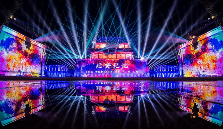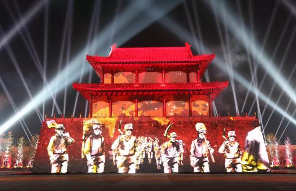 夜幕降臨,采風團在鐘鼓樓廣場觀看了首個裸眼3D紅色故事藝術映畫——《延安記憶》,追憶延安崢嶸歲月,探尋紅色延安精神。