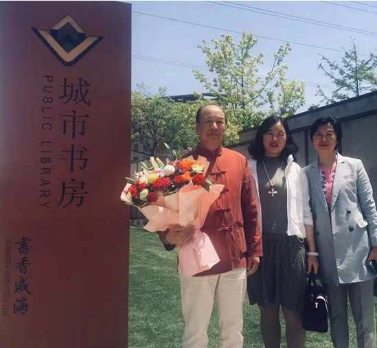 1、中國作協會員、亞洲微電影客座教授凌鼎年與山東威海市文登區作協主席李喜華(中),城市書房創始人、益本董事長妙明居士(右)合影于城市書房門口(2021年5月9日)